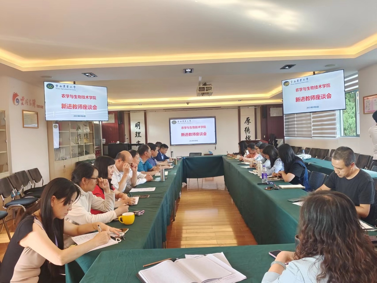 于2023年9月6日下午在尚农楼304会议室召开新进教师座谈会。李富生书记、李建宾院长、寸湘琴组织员、安曈昕副书记、周平副院长、陈军文副主任,以及各位系主任、办公室老师和近两年新进教师参加了交流座谈,座谈会由李富生书记主持。