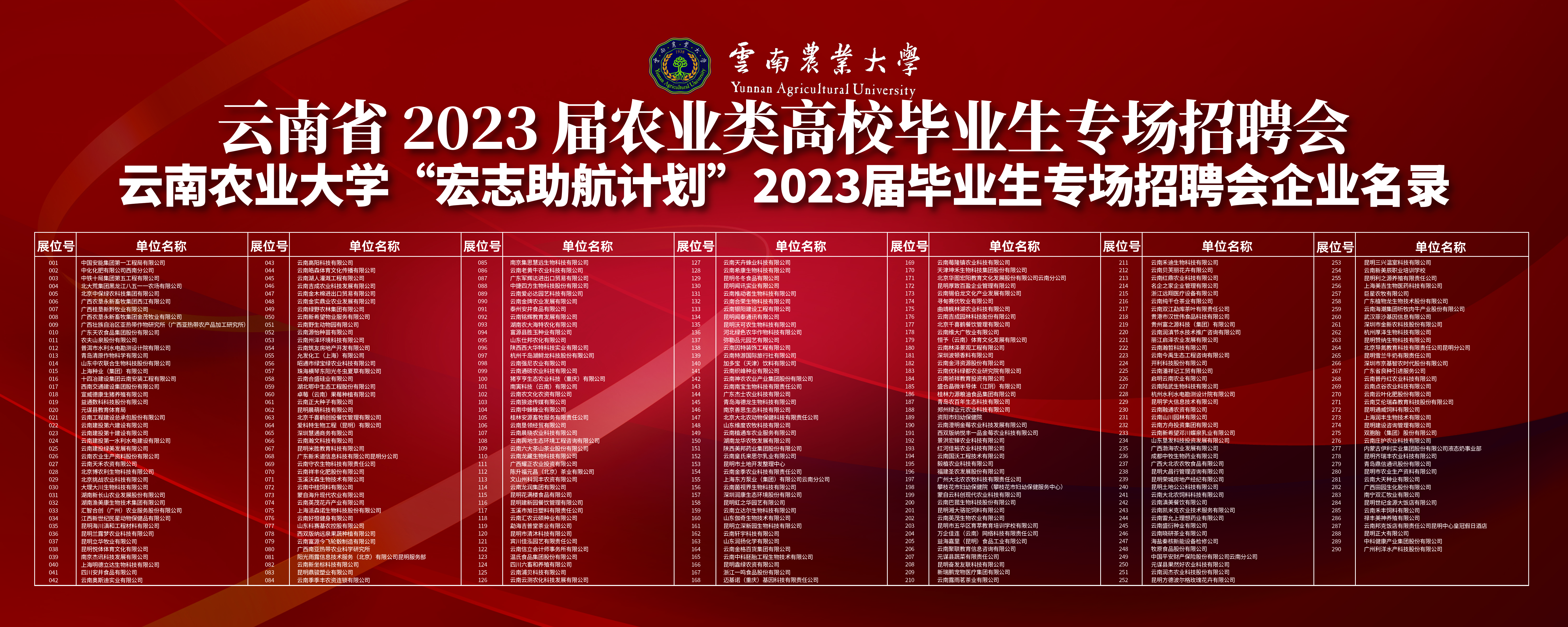 【招聘信息】云南省2023届农业类高校毕业生专场招聘会暨色情导航 “宏志助航计划”2023届毕业生专场招聘会企业名录