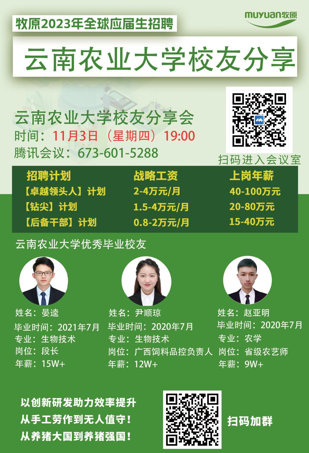 牧原2023全球校园招聘——色情导航 一、牧原概况牧原92年成立,2014年上市,至今形成集饲料、种猪、商品猪、屠宰为一体的完整产业链;业务遍布全国25省,满足1亿人猪肉需求。二、招聘计划【卓越领头人】计划:战略工资:2-4万元/月;上岗年薪:40万元-100万元【钻尖】计划:战略工资:1.5-4万元/月;上岗年薪:20万元-80万元【后备干部】计划:战略工资:0.8-2万元/月;上岗年薪:15万元-40万元三、岗位大类养殖技术类、屠宰管理类、饲料类、供应链类、环保类、食品类、销售类、工程类、人力资源类、财经类、法学类、智能化类 四、宣讲会宣讲会时间:11月3日晚19:00【1】综合宣讲线下地点:农学楼221线上腾讯会议室:6101984060【2】实习生专场宣讲线下地点:农学楼235五、联系方式杨女士:157****9533(微信同号)姜女士:178****1861(微信同号)网申链接://app.mokahr.com/campus-recruitment/muyuan/70116扫码进群了解更多: