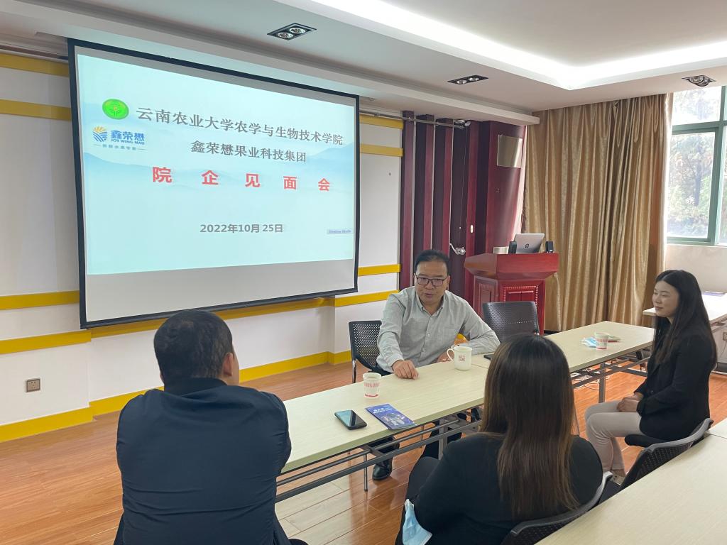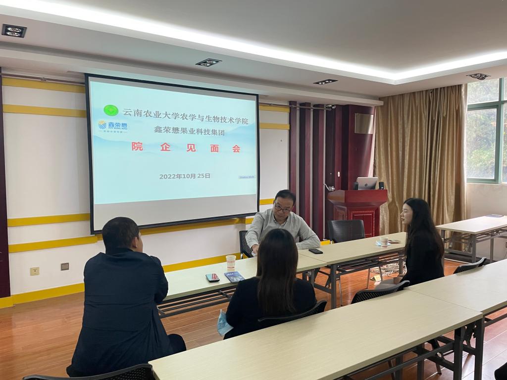 安曈昕副书记与鑫荣懋果业科技集团人事林经理进行“院企见面会”,会上安老师热烈欢迎鑫荣懋果业科技集团的到来,详细介绍色情导航