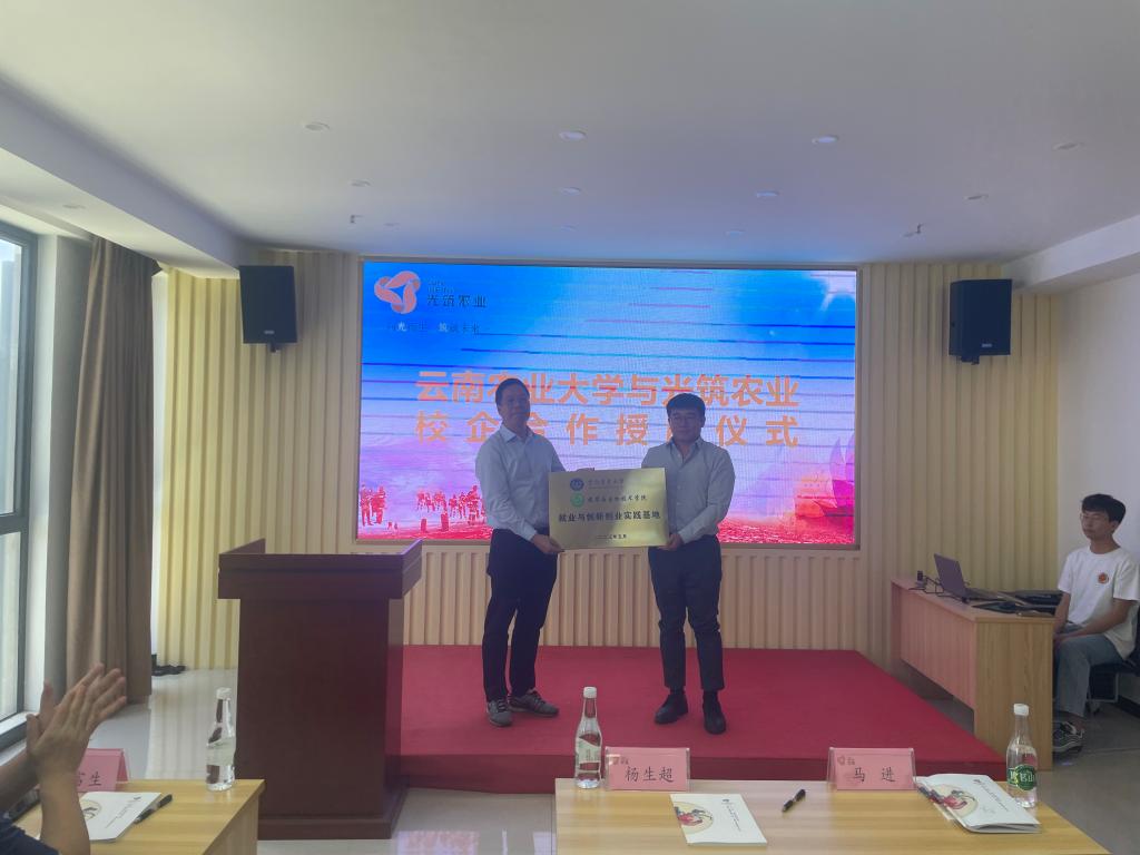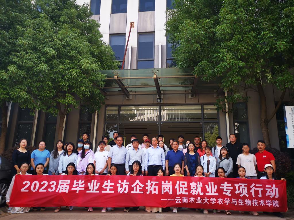 在杨生超副校长的带领下到访昆明市经开区银河科技园相关企业,并与光筑农业集团有限公司进行校企合作授牌仪式。学院党委书记李富生、组织委员寸湘琴、党委副书记安曈昕、毕业班班主任戴榕、王源、张应鹏及学院2023届毕业生一行40余人参加上述活动。