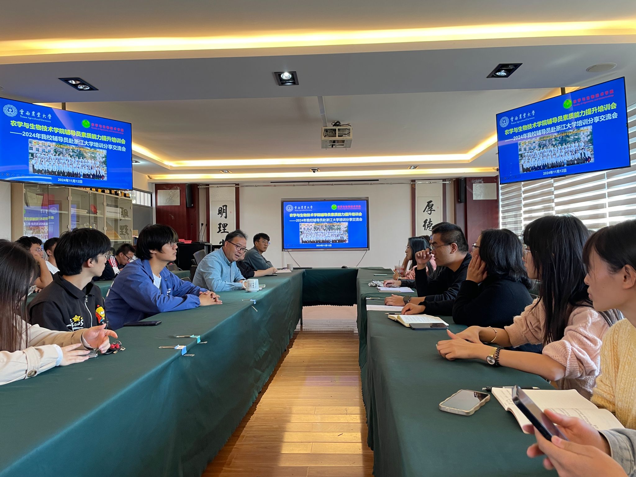 开展“骨干辅导员赴浙江大学开展素质能力提升培训学习成果分享交流会”,参加此次培训的党委副书记、首席辅导员安曈昕及专职辅导员张应鹏作交流发言,学院全体班主任、辅导员及各班班长参会。