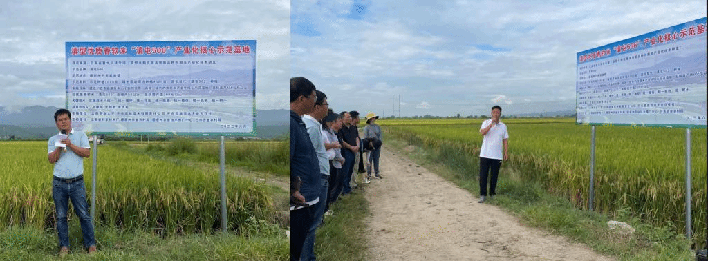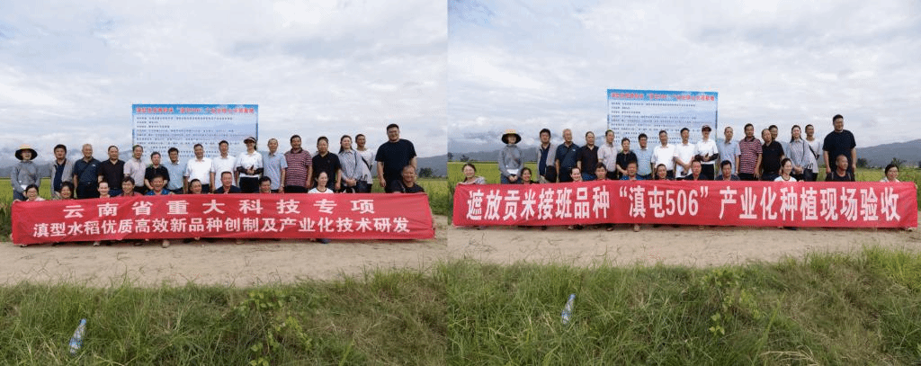 2023年8月30日,由我校国内合作与社会服务处朱仁俊处长组织并主持,在云南省科学技术厅、云南省农业农村厅、云南省农业技术推广总站、云南省种子管理站、云南省作物学会和德宏州市两级相关部门的支持下,在德宏傣族景颇族自治州芒市遮放镇进行的遮放贡米接班品种“滇屯 506”产业化种植现场验收传来喜讯。经现场实收测产,“滇屯506”千亩示范方平均亩产521.3公斤,实现了既优质又高产的目标,专家组一致同意通过现场验收。
