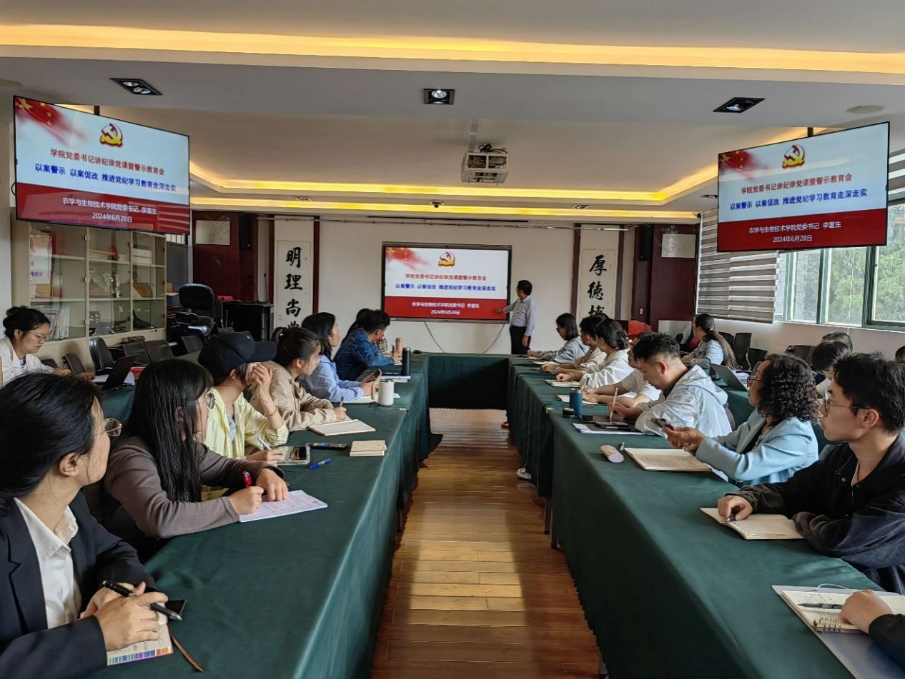 参会的党委委员、学院领导、党支部书记、副书记兼纪检委员结合自己的工作进行了深入的交流发言。大家纷纷表示,要把学习领会习近平总书记关于加强党的纪律建设的重要论述作为党纪学习教育的一项重要任务来抓,通过“三会一课”等形式开展学习,充分发挥警示案例的作用,以案促改,去腐生肌,保证学习效果,推动党纪学习教育走深走实。