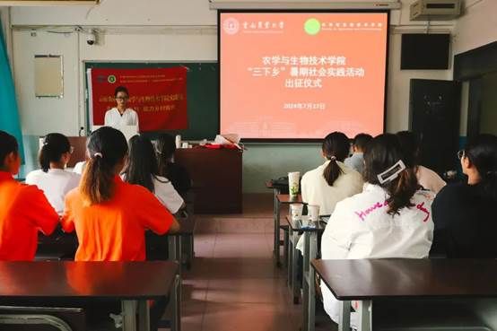 学院党政领导班子及全体实践队员在尚农楼举行出征仪式。此次仪式意义非凡,这不仅是对即将踏上征程的“三下乡”团队的一次有力动员和深情祝福,更是一次深入领悟国家政策和总书记殷切教诲的重要契机。