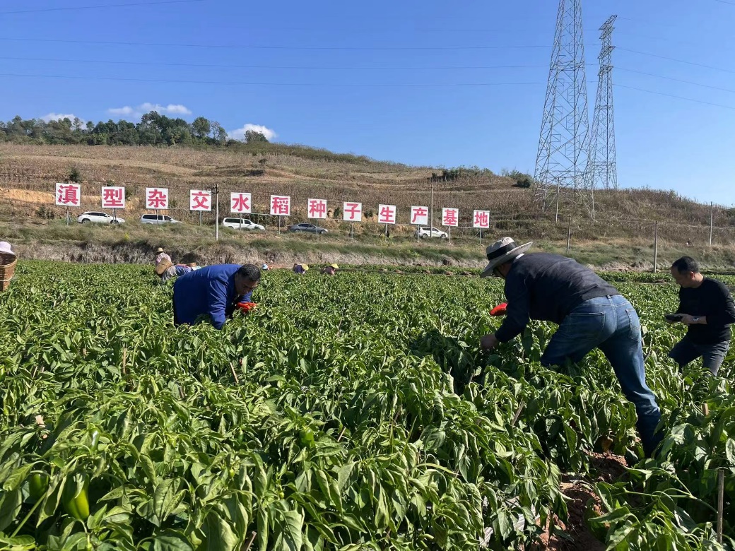 此时正值菜椒、蚕豆和马铃薯丰收时节,农户们正在田间忙碌采摘。这些田块夏秋开展滇型水稻制种和良种繁育亩产值5000元,冬春种植蔬菜亩产值5000元,一年亩产值上万元。开展种子收获后种植冬季蔬菜,水旱稻菜轮作,实现“双减双增”,减少田间落谷保证种子纯度,减少田间有害生物提高产量,增加综合产值有利于可持续生产,增加农民收入助力乡村振兴。